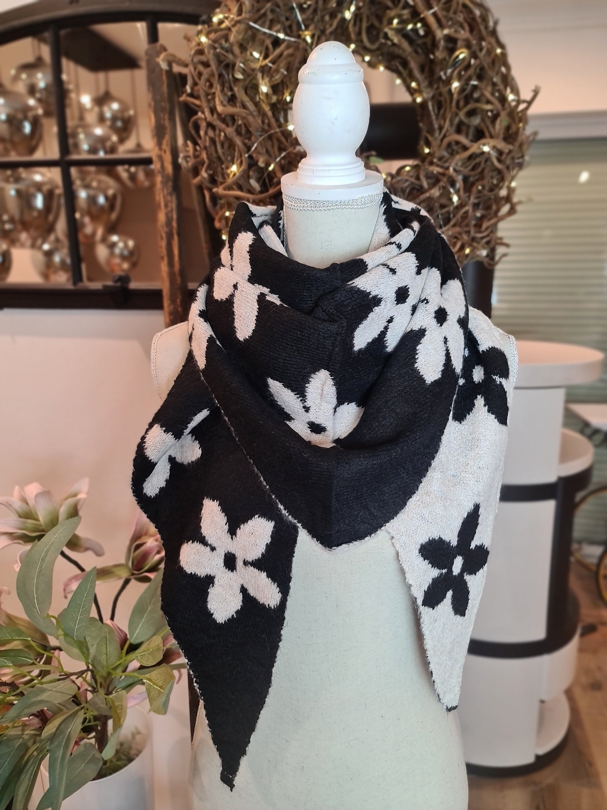 3 Eck Schal schwarz Blume