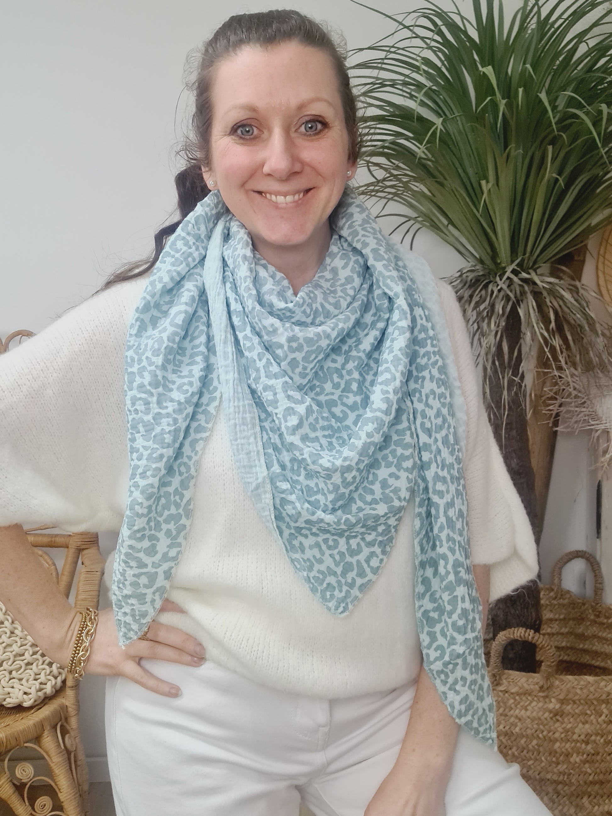 Musselin 3Eck Tuch Leo Türkis